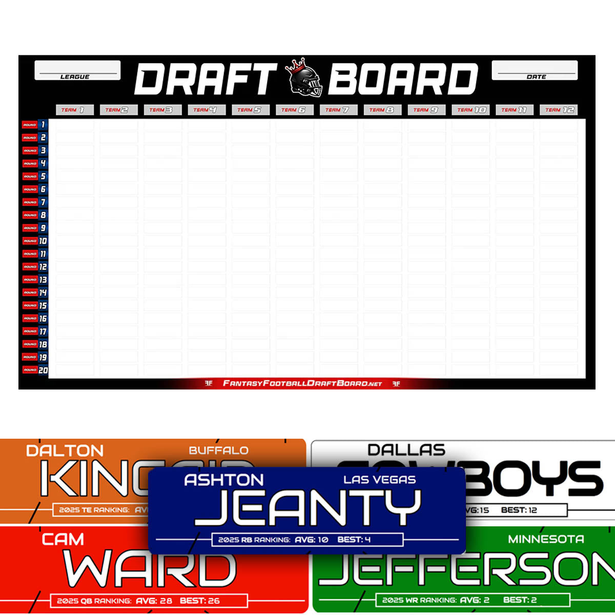 Own the Room on Draft Day. Turn your 2025 fantasy football draft into an event your league won’t forget. This complete draft board kit includes 610+ player labels, featuring every relevant 2025 rookie, so you can draft with confidence and keep the whole room locked in. Whether it’s for bragging rights or tradition, this is how you set the tone for a legendary season.